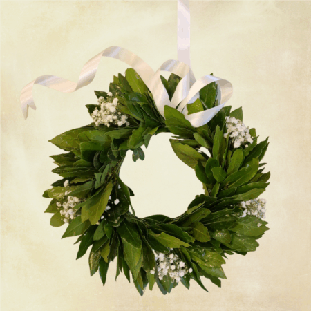 Coroncina di Alloro con Nebbiolina e Nastro di Seta Bianco