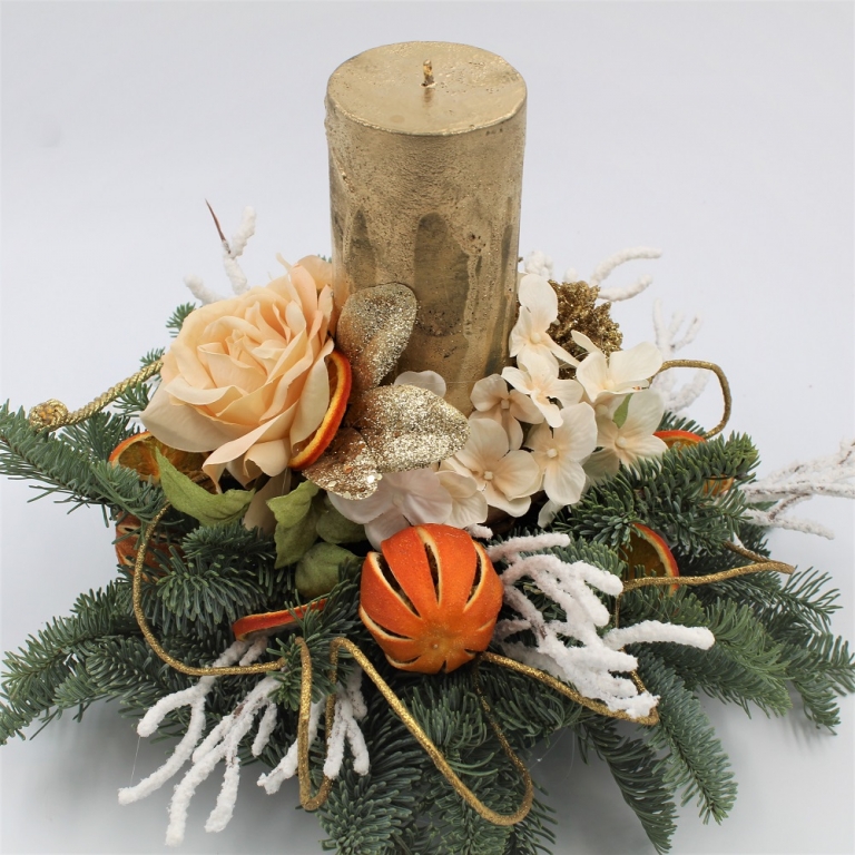 Questo prodotto è completamente personalizzabile. È possibile cambiare la scelta dei fiori, degli accessori e dei colori senza alcuna variazione di prezzo. Chiamaci per comporre insieme il tuo centrotavola ideale!